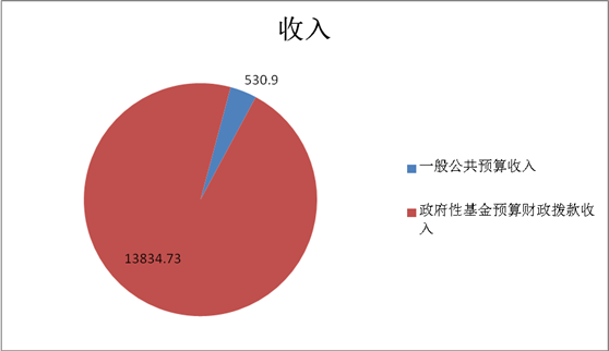 2019年本年收入合计14365.63万元,其中:一般公共预算财政拨款收入530.9万元,政府性基金预算财政拨款收入13834.73万元。